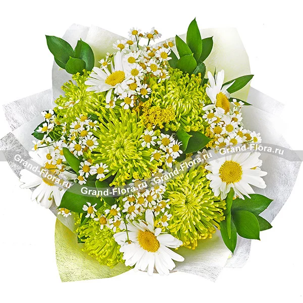 Уточняйте наличие ромашек у операторов. Возможна замена на ромашковидную хризантему!